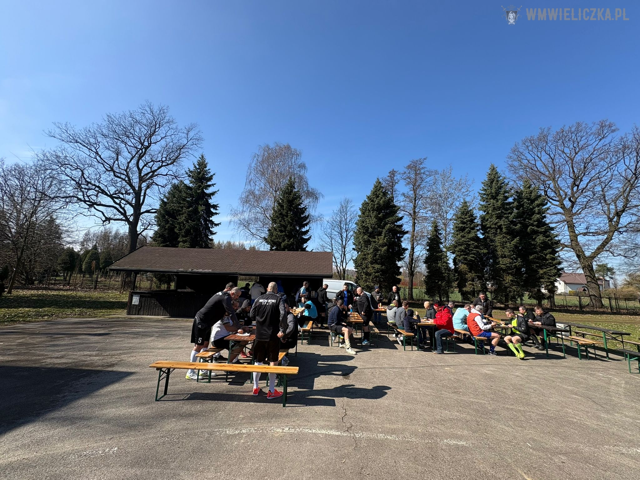 Niestety, do tego meczu przystąpiliśmy w bardzo okrojonym składzie 😓, przetrzebionym przez kontuzje oraz sytuacje rodzinne. Drużyna WM Wieliczka musiała posiłkować się wsparciem z trybun 🙌 – w ostatnim meczu na boisko wszedł nasz wierny kibic Paweł Kowalik 👏⚽